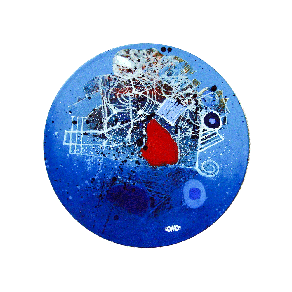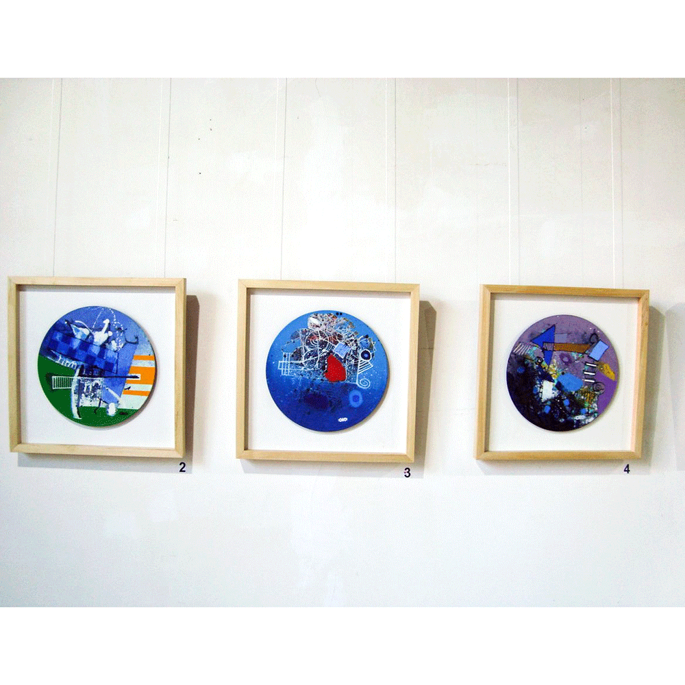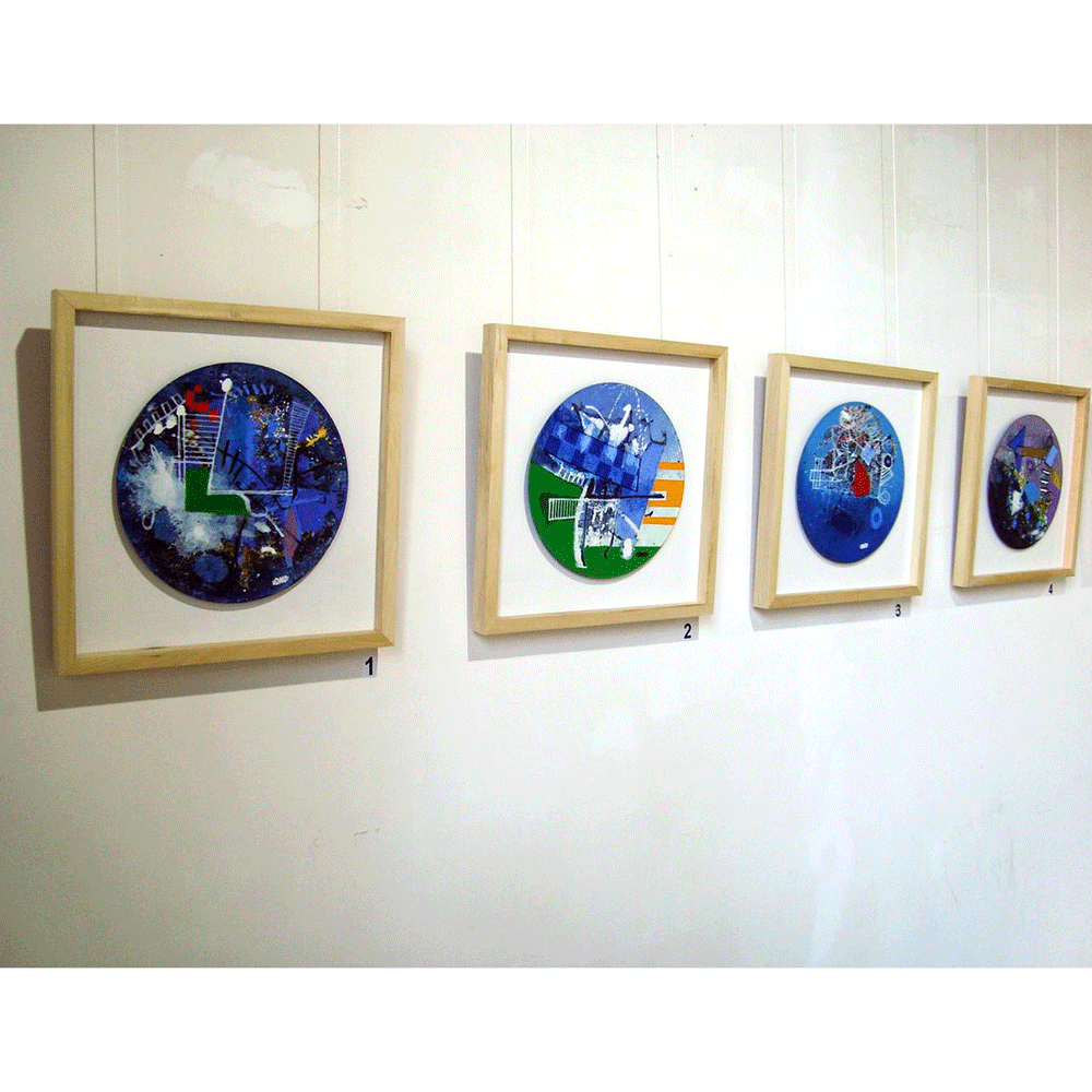 I have always liked round shapes and one day I came to the realization that I want to paint on vinyls. I start the process by hanging around 10-20 vinyls on the walls of my studio, then I start painting on all of them simultaneously. It might take from several days to several months to finish the painting. I continue to work unless I feel the artwork is complete. As always, painting for me is the best way to express my emotions, feelings and moods.