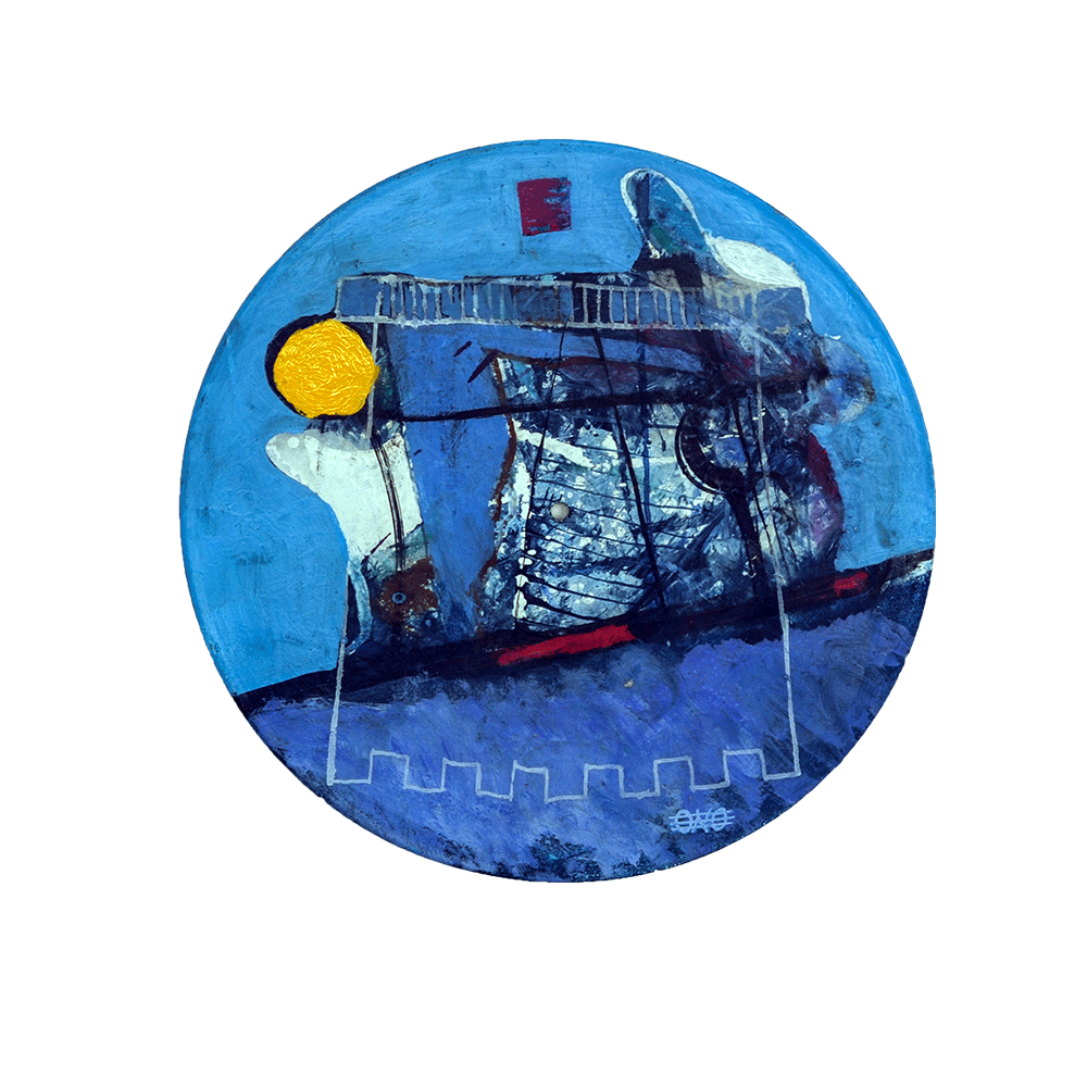 I have always liked round shapes and one day I came to the realization that I want to paint on vinyls. I start the process by hanging around 10-20 vinyls on the walls of my studio, then I start painting on all of them simultaneously. It might take from several days to several months to finish the painting. I continue to work unless I feel the artwork is complete. As always, painting for me is the best way to express my emotions, feelings and moods.